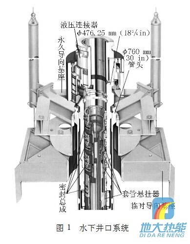 臨時導(dǎo)向基座用于定井位,是首先下入的設(shè)備,坐在海底泥線上;永久導(dǎo)向基座安裝在臨時導(dǎo)向基座之上,通過連接在導(dǎo)向柱上的導(dǎo)向繩引導(dǎo)后續(xù)工具的入井及設(shè)備的安裝;?762mm(30in)導(dǎo)管頭懸掛導(dǎo)管坐落在永久導(dǎo)向基座內(nèi),用專用下入工具隨永久導(dǎo)向基座同時下入;?476.25mm(183 /4in)高壓井口頭下部連接表層套管,坐落在導(dǎo)管頭內(nèi),通過液壓連接器連接水下防噴器;各層