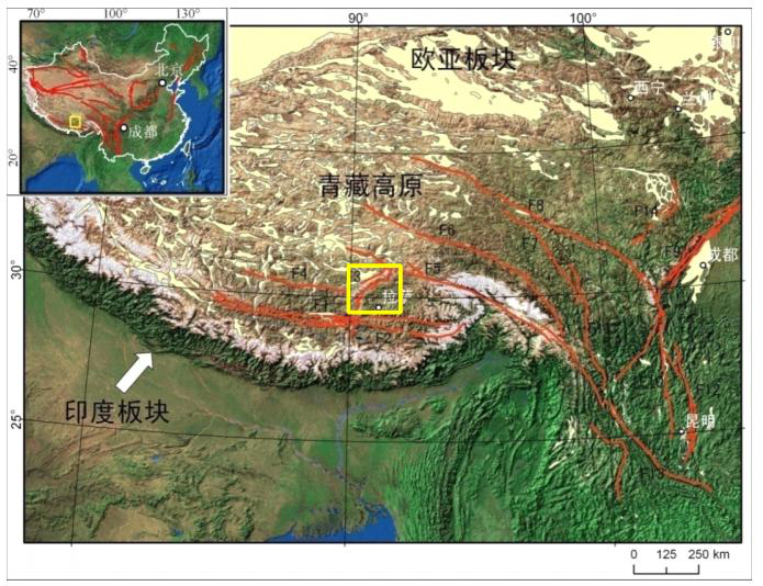 熱田位于羊八井斷陷盆地中心略靠念青唐古拉山南麓.熱田南側(cè)為岡底斯山火山巖漿弧,北側(cè)為念青唐古拉山變質(zhì)巖體隆升山體.